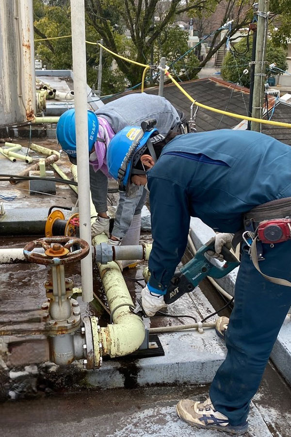 工場内で排出される気体や液体を運ぶための配管設置と、それに伴う流量の調整を行います。中には外部に漏れると大変危険な物質もあり、他の配管工事に比べて専門性が高く、高度な技術と知識が必要です。当社は長年の実績と経験のあるプロが行いますのでお任せください。